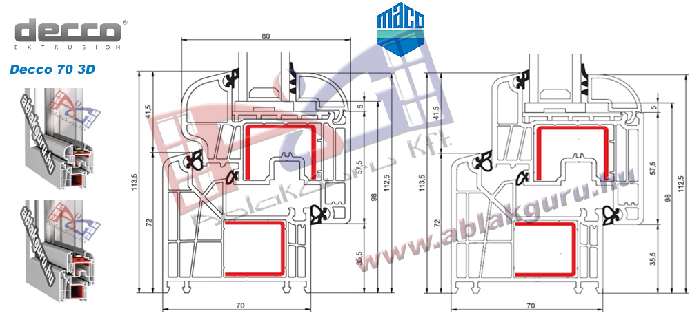 Profil: Decco 70Beépítési mélység: 70mmLégkamrák: HatGumi: kettőSzín: RAL 9003 Vasalat: MACO multi-trend Üveg: 4-16AR-4 Gyártás: Péntektől 12 nap Raktárkészlet:VAN!!!